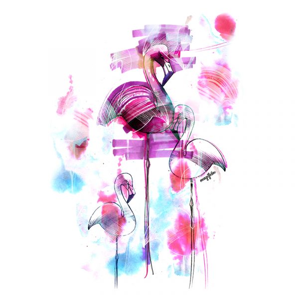 ★ Kvalitní středně velká ekologická taška z recyklované bavlny a recyklovaného polyesteru. Materiál i výroba jsou ekologické a etické. Jedná se o udržitelnou, tzv. slow fashion módu. Tašku zdobí autorská kresba a malba tří barevných plameňáků. Designu dominují výrazné barvy růžové, fialové a modré. Výsledný umělecký dojem umocňuje výrazná stylizace(disproporce) anatomie.