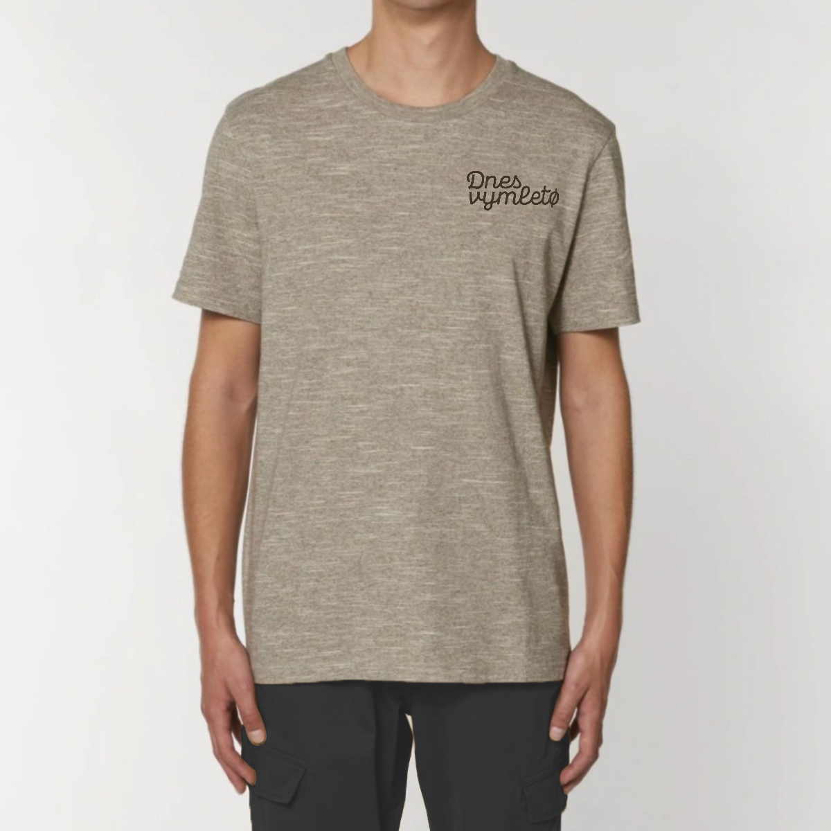 Tričko zdobí autorská výšivka s hravým nápisem DNES VYMLETØ. Přeškrtnuté O je v tomto případě vtipný grafický prvek, který evokuje kávové zrno.