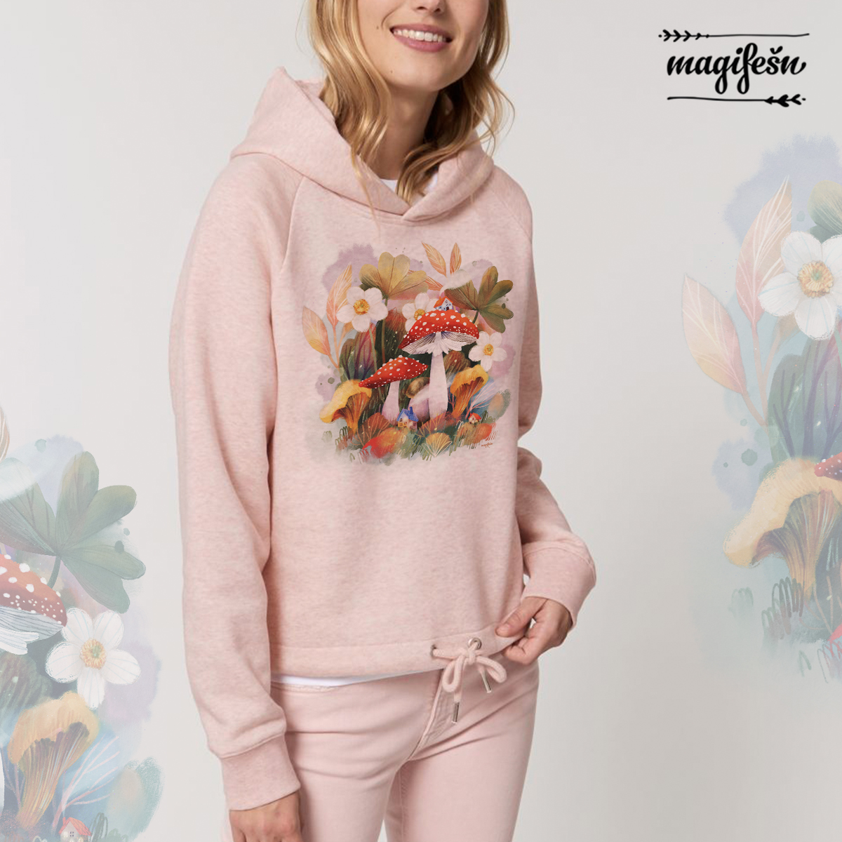 ★ Kvalitní jemná ekologická mírně zkrácená mikina s prodlouženým zadním dílem střiženým do kulata. Mikina je z 85 % z biobavlny a pyšní se jedním z nejpřísnějších certifikátů – certifikátem GOTS. Materiál i výroba jsou ekologické a etické. Jedná se o udržitelnou tzv. slow-fashion módu. Mikinu zdobí autorská ilustrace kouzelného lesa s tóny do studených barev.