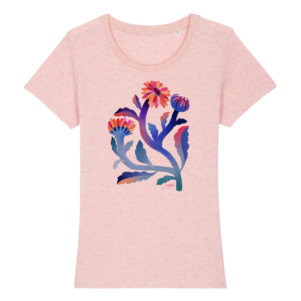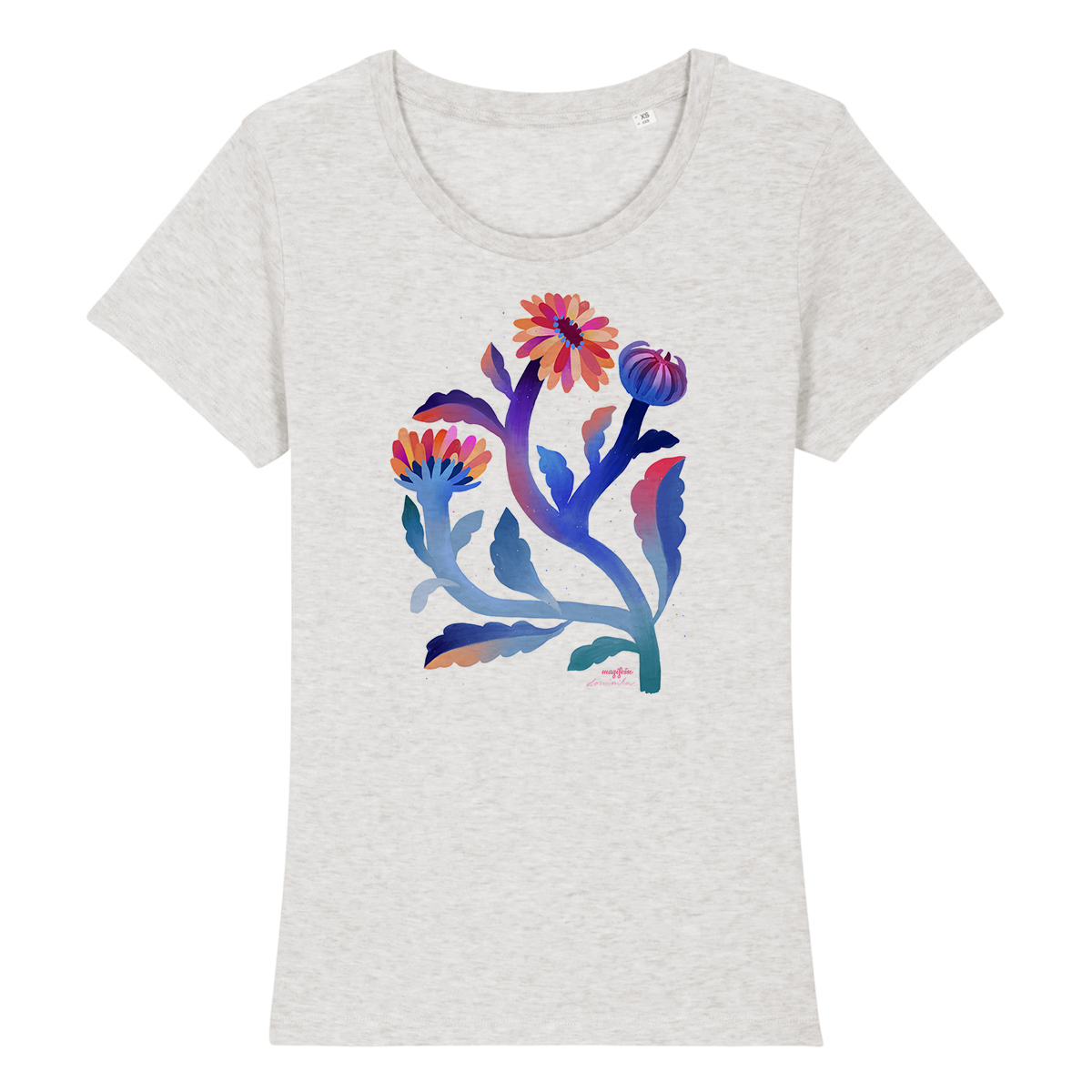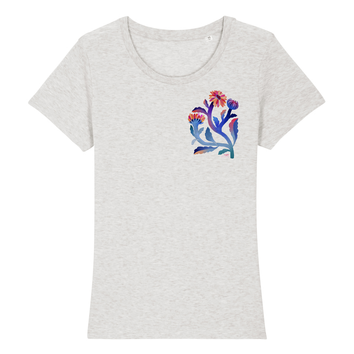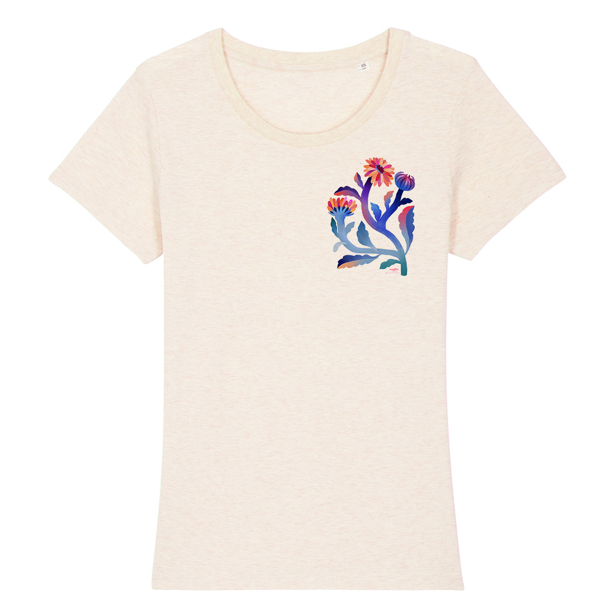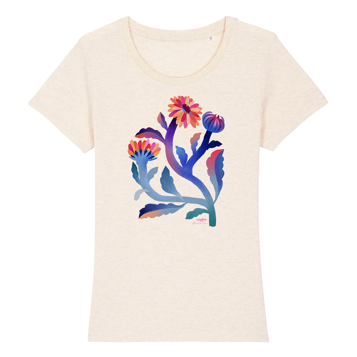 ★ Kvalitní ekologické tričko z biobavlny* s autorským designem. Tričko je ze 100% prstencově předené česané biobavlny, a pyšní se jedním z nejpřísnějších certifikátů – certifikátem GOTS. Materiál i výroba jsou ekologické a etické. Jedná se o udržitelnou, tzv. slow fashion módu. Tričko zdobí autorská ilustrace ze série „Botanica Magica“. Nevšedně zpracovaný motiv Měsíčku lékařského v nepřehlédnutelných přechodech modré, růžové a oranžové v plném rozkvětu. Originální rukopis celé série udělá z každého outfitu umělecký počin.